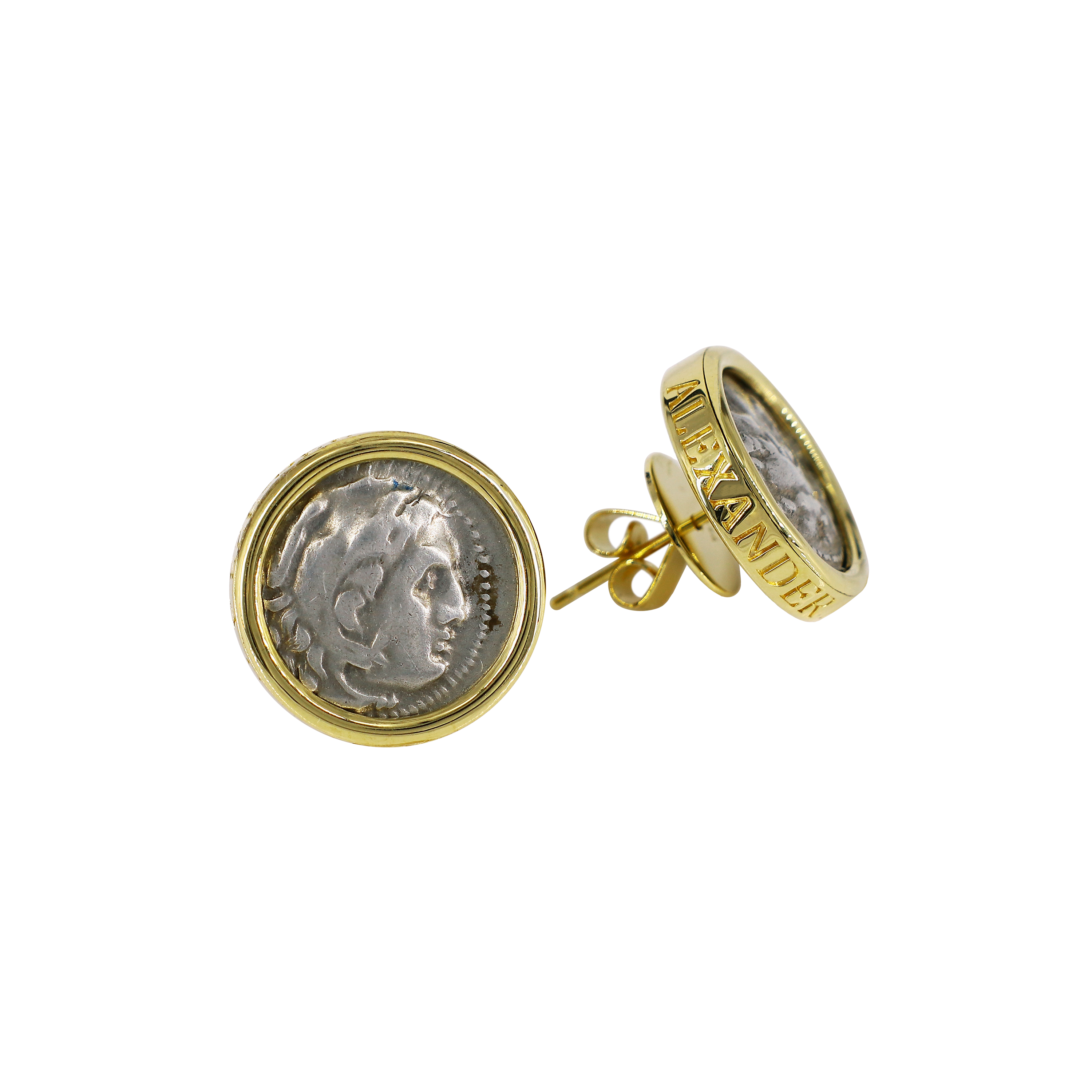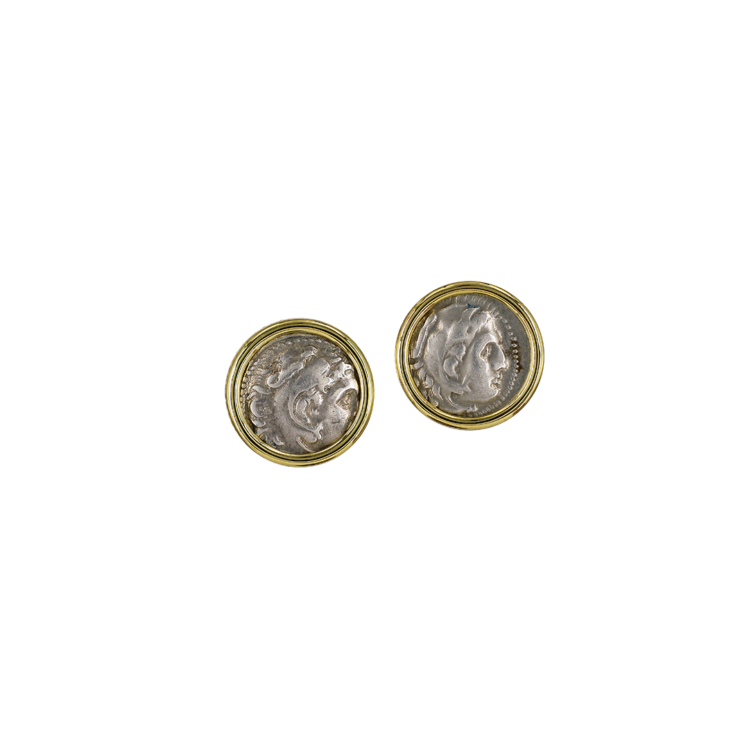 當古幣遇上現代設計,不只是時間的交會,更是一段歷史的重生。 這對古幣耳環,鑲嵌的是來自兩千多年前、刻有亞歷山大大帝肖像的古錢幣——他成就了不朽的傳奇,也將這段輝煌定格在這小小圓型之上。 在經歷歲月洗禮後,如今化為一種低調卻鮮明的風格象徵。 佩戴它,讓一位帝王的意志、勇氣與榮耀,與您並肩而行。