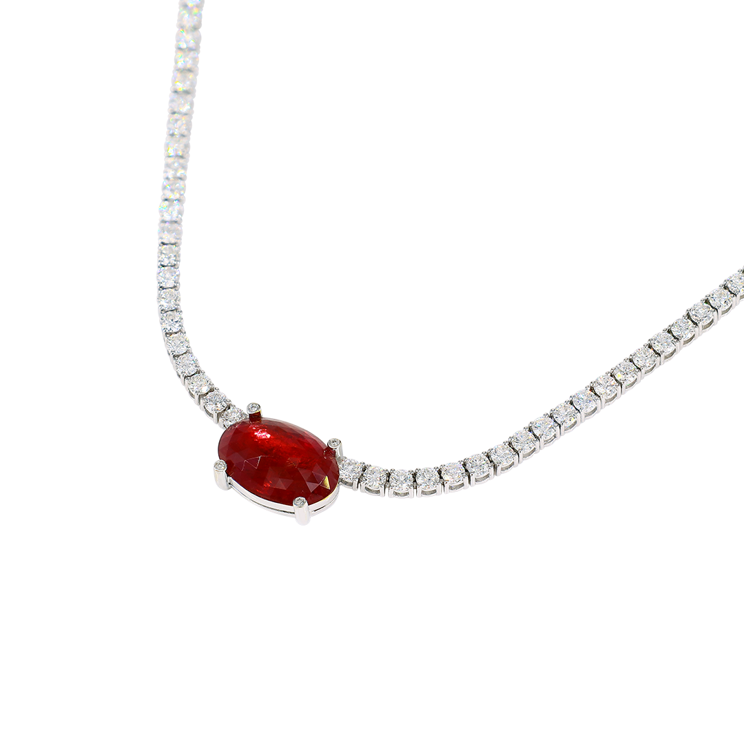 紅寶石與鑽石的經典結合,讓炙熱而豔麗的色澤在頸間恣意綻放。