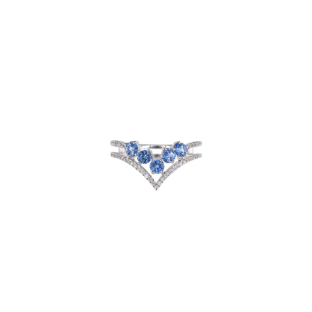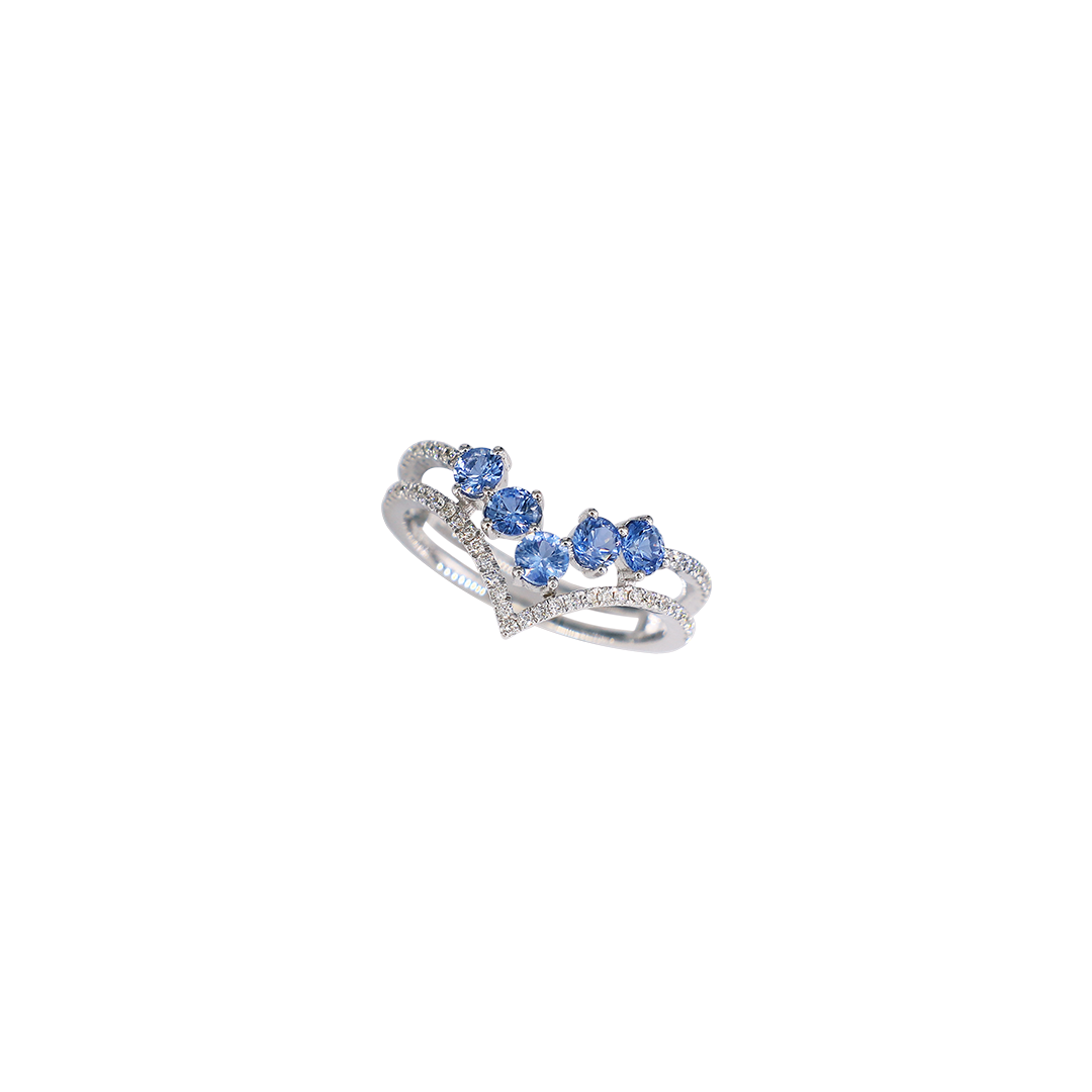 浪漫的藍寶石 V 形戒指,單獨配戴,是優雅的體現;或是與其他戒指疊戴,讓鑽石與寶石間的光芒相互輝映,更添一份精緻與華麗。